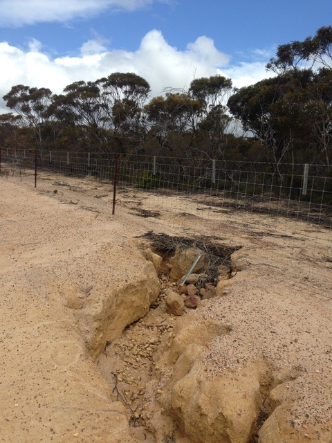 The images below show some of the erosion damage along the State Barrier Fence near Ravensthorpe following flooding in February 2017.